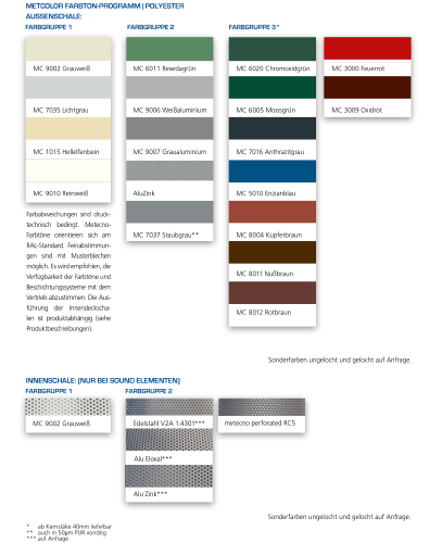 Metecno Standardbeschichtungsprogramm